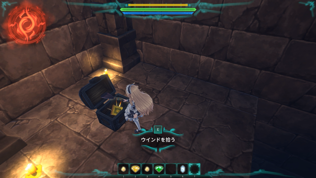 やや敵が多めなエリアだった。ウインドを拾ってレベルが上がった。