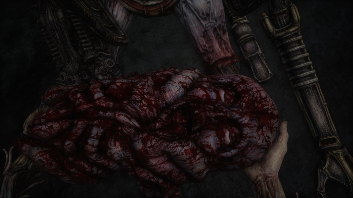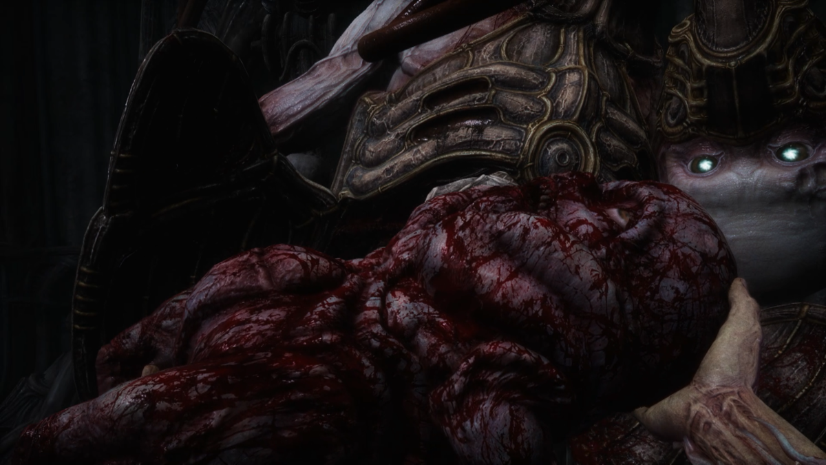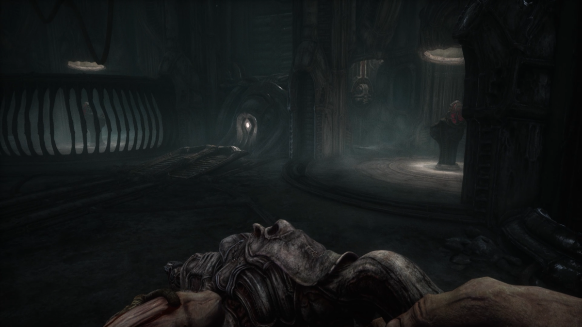 白を基調とした場所なので、さっきまでいた赤黒いグロテスクな場所とは印象がガラッと変わる。