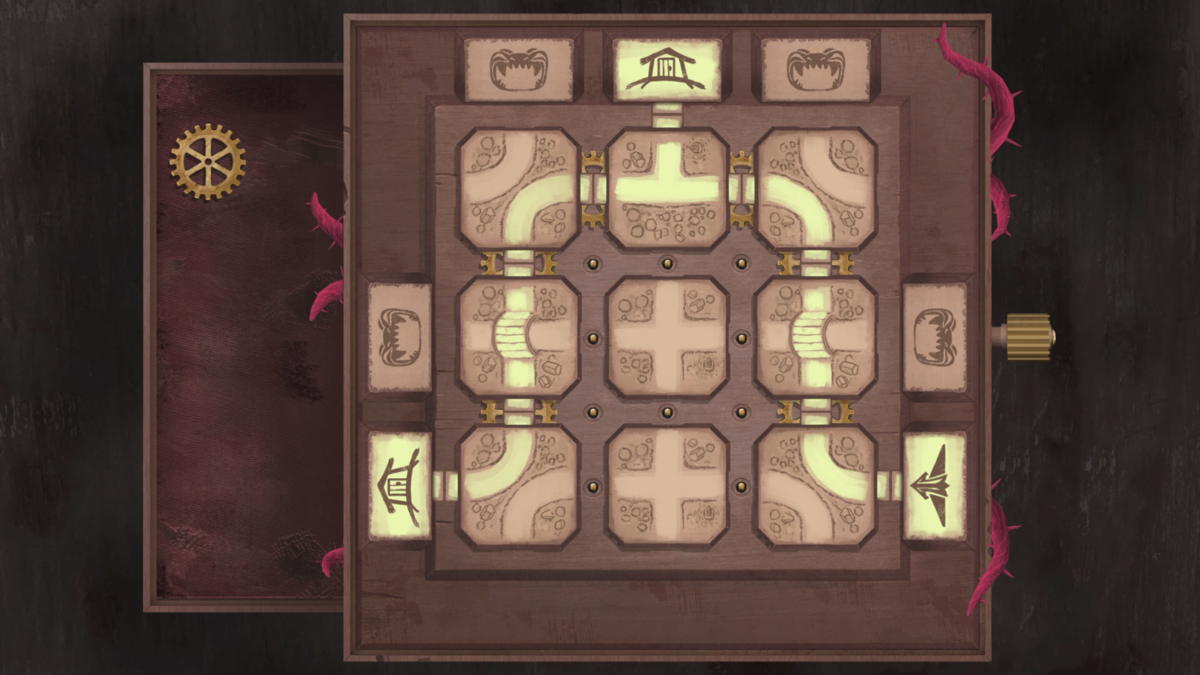 画面奥から4番目、3番目、5番目の順に触手に触れると植物が開くので中へ進む。