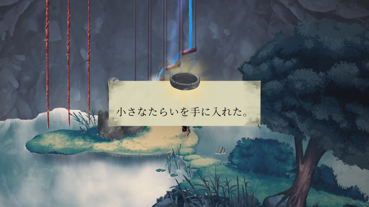 ツタを持ち画面右にある岩にツタを巻き付ける。