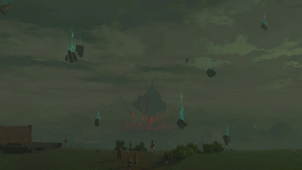 リンクからハートを奪い元気になったミイラはとてつもない量の瘴気を放ち、地上のハイラル城を空へ押し上げる。