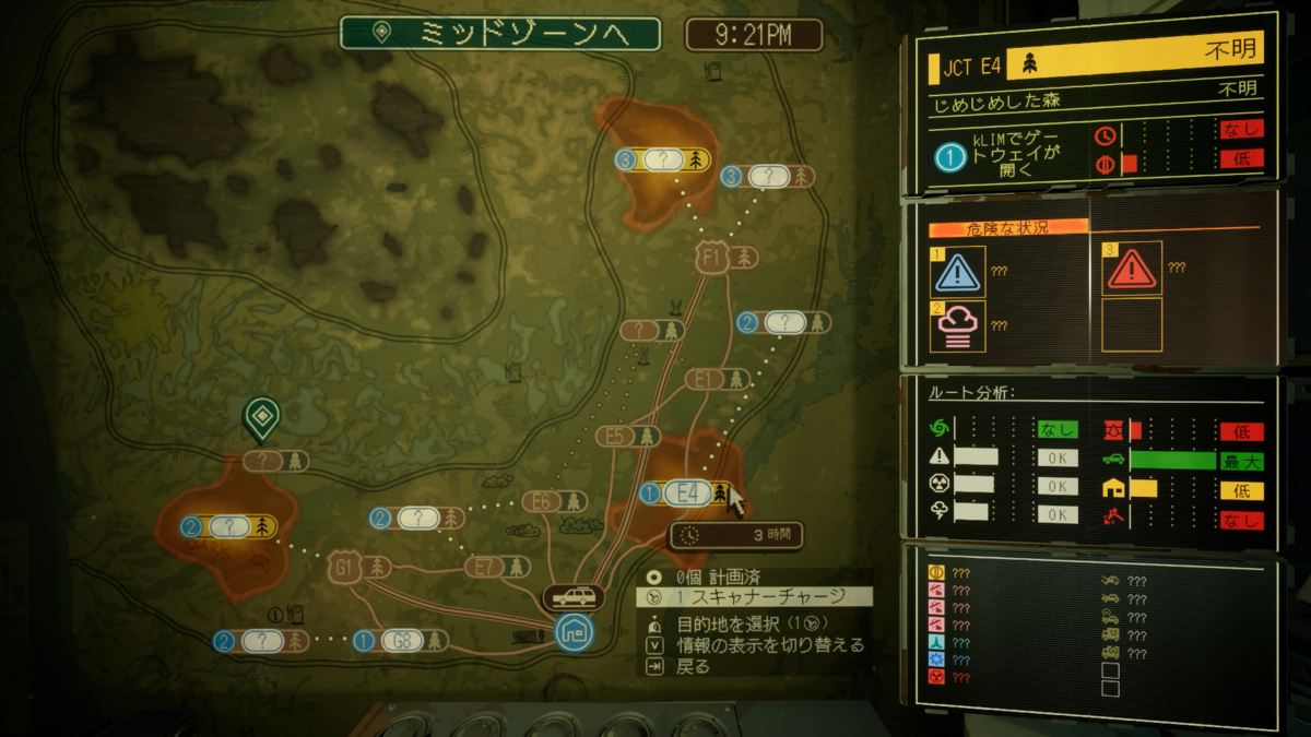目的地をE4にする場合、E4を長押し(スキャナーチャージ)すると画面右にE4の情報が表示される。