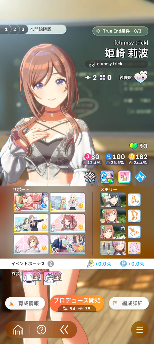 姫崎莉波は最終試験でビジュアルが重視されるのでビジュアルを上昇させるサポートを多めに選択。