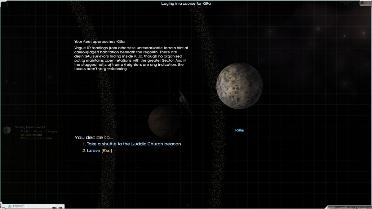 軌道上から惑星に降り立つための小さなシャトルに乗り換えてルディックの教会の場所を示しているビーコンを目指す。