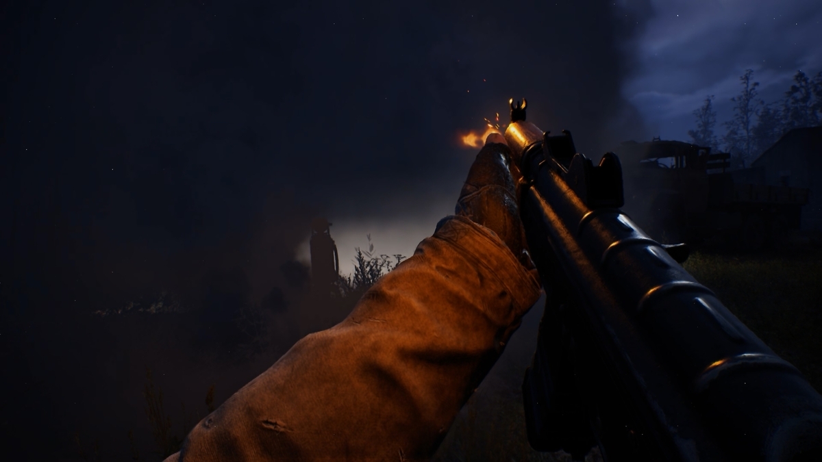ナイフを持って兵士の背後に忍び寄ろうとしたそのとき、突然銃声が響いた。目の前の兵士から血が噴き出すと同時に撃たれた衝撃で手を握ってしまったのだろう。持っていたライフルを乱射しながら崩れ落ちる。
