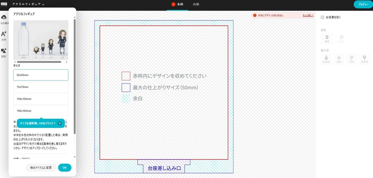 次にアクリルフィギュアを選択するとデザイン画面が出てくる。