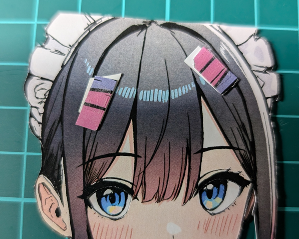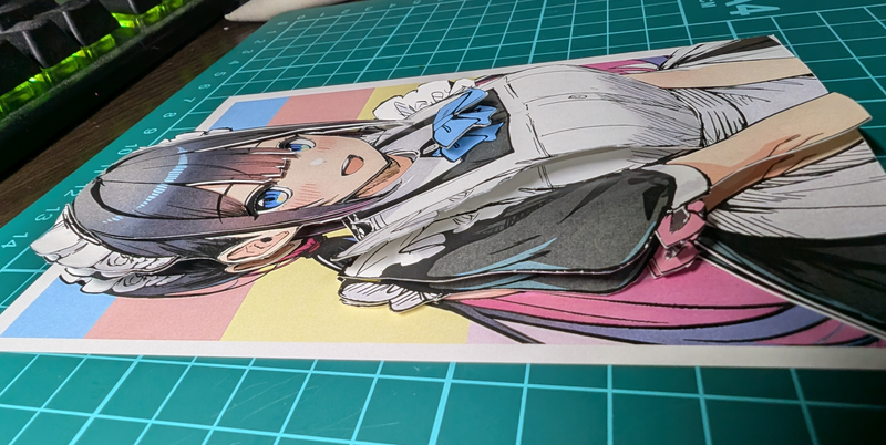 タミヤのモデラーズナイフが手元にあったので、これを使ってメイドさんを切り抜いてみる。